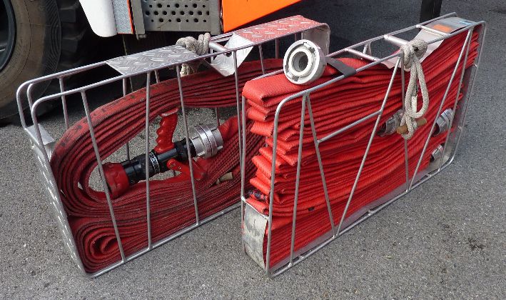 Der 2. und 4. Korb ist mit je 3 C-Schläuchen (15m Länge, 42mm